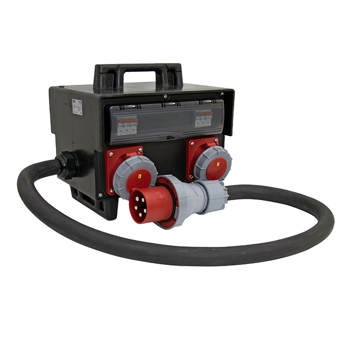 Holtes undercentraler i solid gummimaterial är en extremt robust och slagtålig kapsling, godkänd för 125A. Centralen är bestyckad med 2 meter gummikabel 5G35 mm² med stickpropp 125A/400V, samt 2st 63A/400V uttag. Varje uttag är avsäkrat separat. Jordfelsbrytare 300mA kan eftermonteras. Centralen har integrerat bärhandtag och stadiga ben, samt är stapelbar.