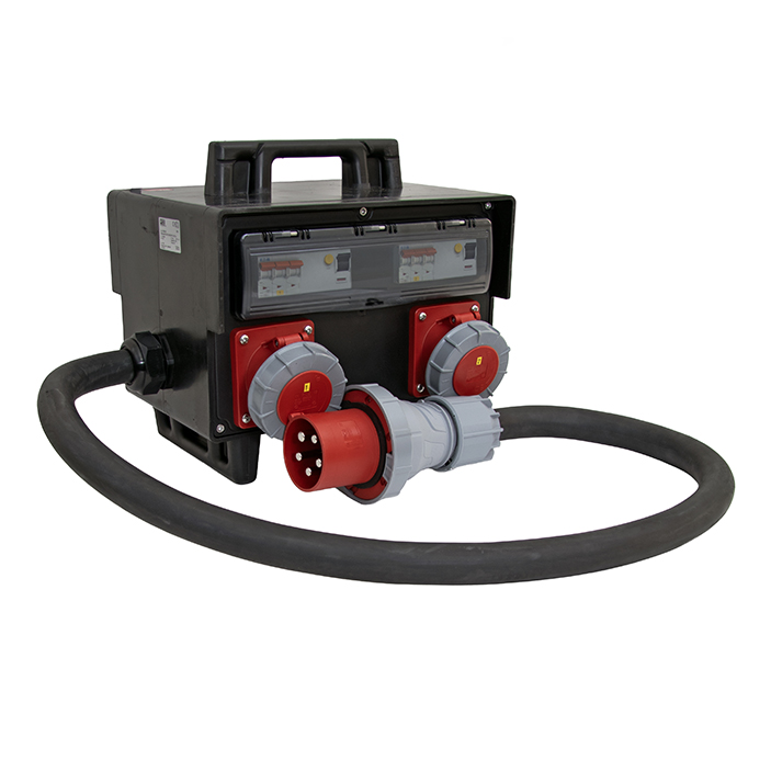 Holtes undercentraler i solid gummimaterial är en extremt robust och slagtålig kapsling, godkänd för 125A. Centralen är bestyckad med 2 meter gummikabel 5G35 mm² med stickpropp 125A/400V, samt 2st 63A/400V uttag. Varje uttag är avsäkrat separat och skyddad av jordfelsbrytare 300mA. Centralen har integrerat bärhandtag och stadiga ben, samt är stapelbar.